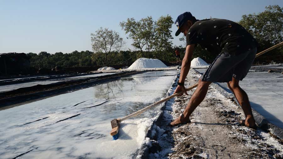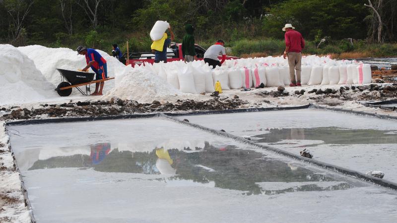 Sacos blancos de 100 Lbs. con sal a granel para uso Industrial.